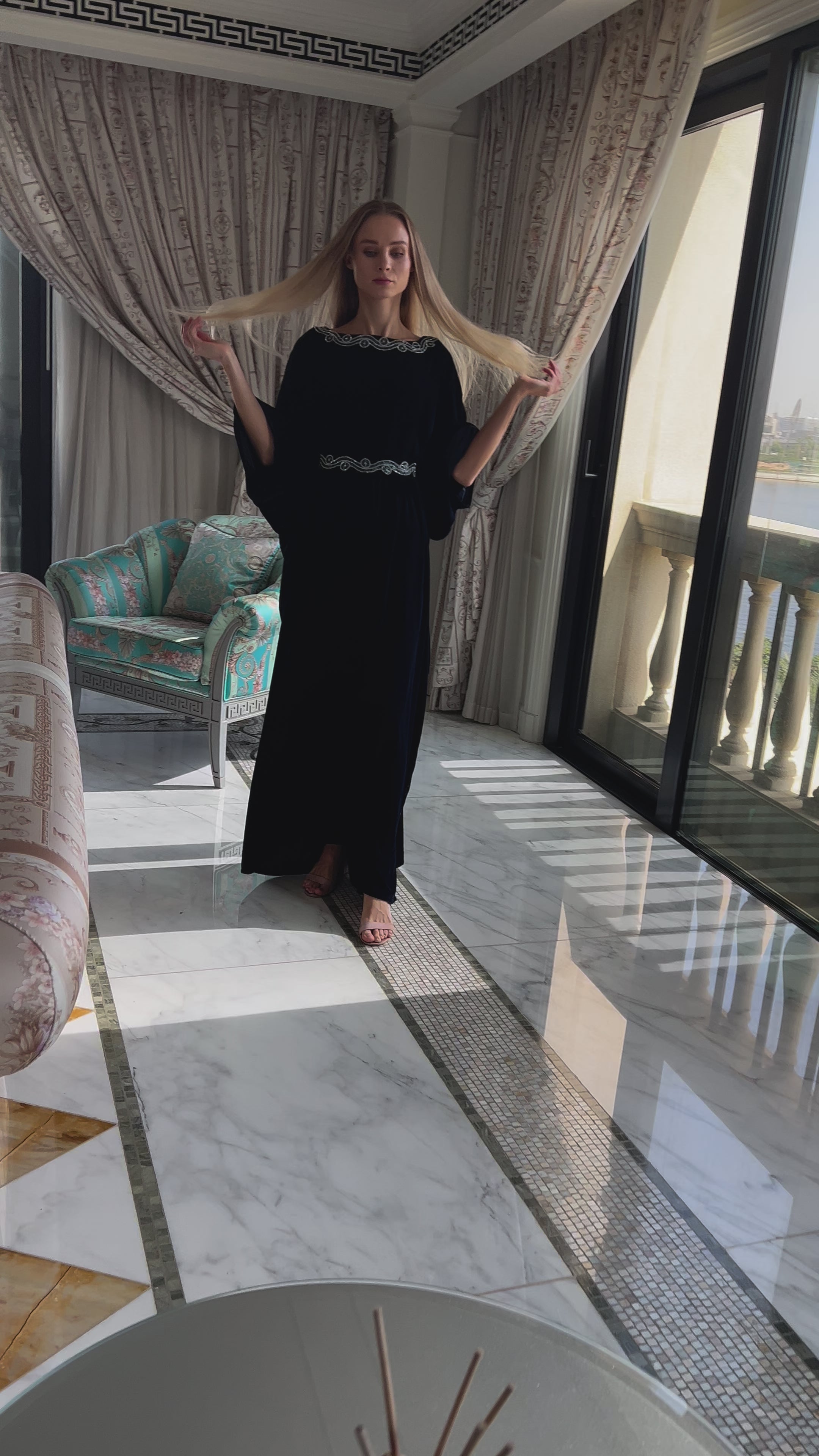 NAHED in deep blue velvet feels soft and plush, with delicate handmade embroidery on the neckline and belt adding subtle detail. The fabric’s rich texture makes it a comfortable yet stylish pick for family visits or cultural occasions.